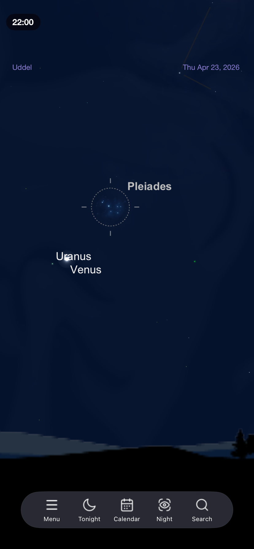 Omstreeks 22:00 uur kunnen we een mooie samenstand zien van de planeten Venus, Uranus en de Plejaden.